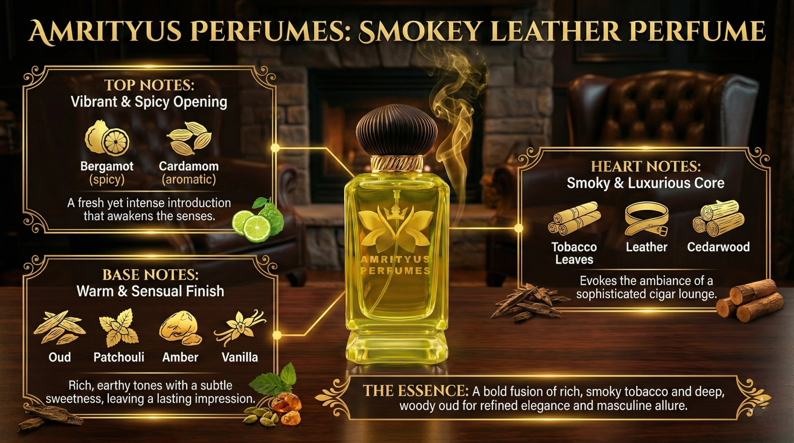 Indulge in the luxurious fusion of two timeless worlds with Smokey Leather Perfume, a bold and sophisticated fragrance that captures the essence of refined elegance and masculine allure. This unique scent is a harmonious blend of rich, smoky tobacco and the deep, woody aroma of oud, creating an unforgettable olfactory experience.